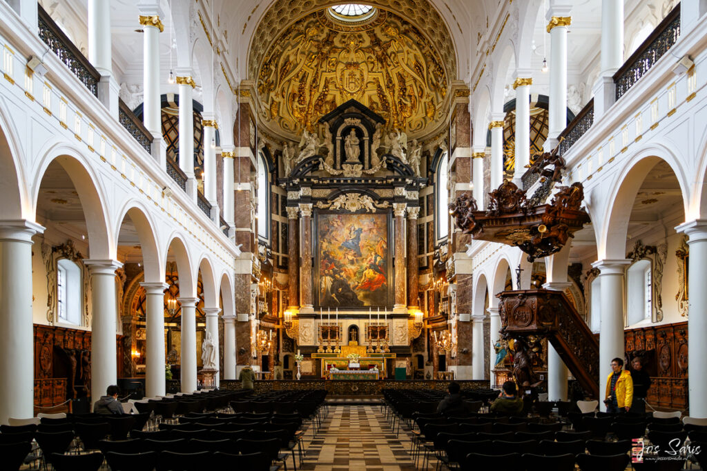 De kerk heeft maar liefst 24 altaren en biedt onderdak aan verschillende kunstschatten zoals marmeren beelden en gebrandschilderde ramen. Het interieur wordt vaak beschouwd als het best bewaarde barokinterieur van België. De grafkapel van Rubens bevat onder andere zijn schilderij Madonna omringd door heiligen, dat rond 1630 werd voltooid.