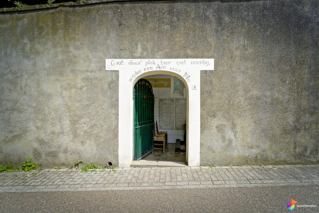 Wandelen maakt hongerig en bij het warme weer van vandaag moet het vochtverlies natuurlijk gecompenseerd worden. Vervolgens lopen we terug naar de parkeerplaats bij Fort Sint-Pieter, echter niet voordat dat wij nog een Lourdeskapel en grot bezocht hebben die we toevallig passeerden.