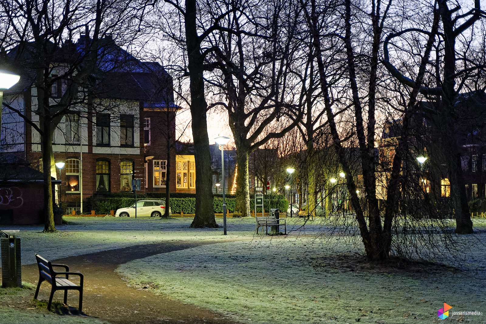 Woensdag, 22 december 2021 | Deze publicatie gaat over mijn wandeling die ik vroeg in de ochtend begonnen ben op de dag waarop de dagen weer beginnen te lengen. Het wordt een wandeling waarop de natuur zich van zijn mooiste kant laat zien. Zoals gezegd ben ik de wandeling om rond 07:30 uur gestart in het Wilhelminapark, het is nog donker op dat moment met overal rijp als gevolg van de nachtvorst van afgelopen nacht. Ik stap in een witte wereld.