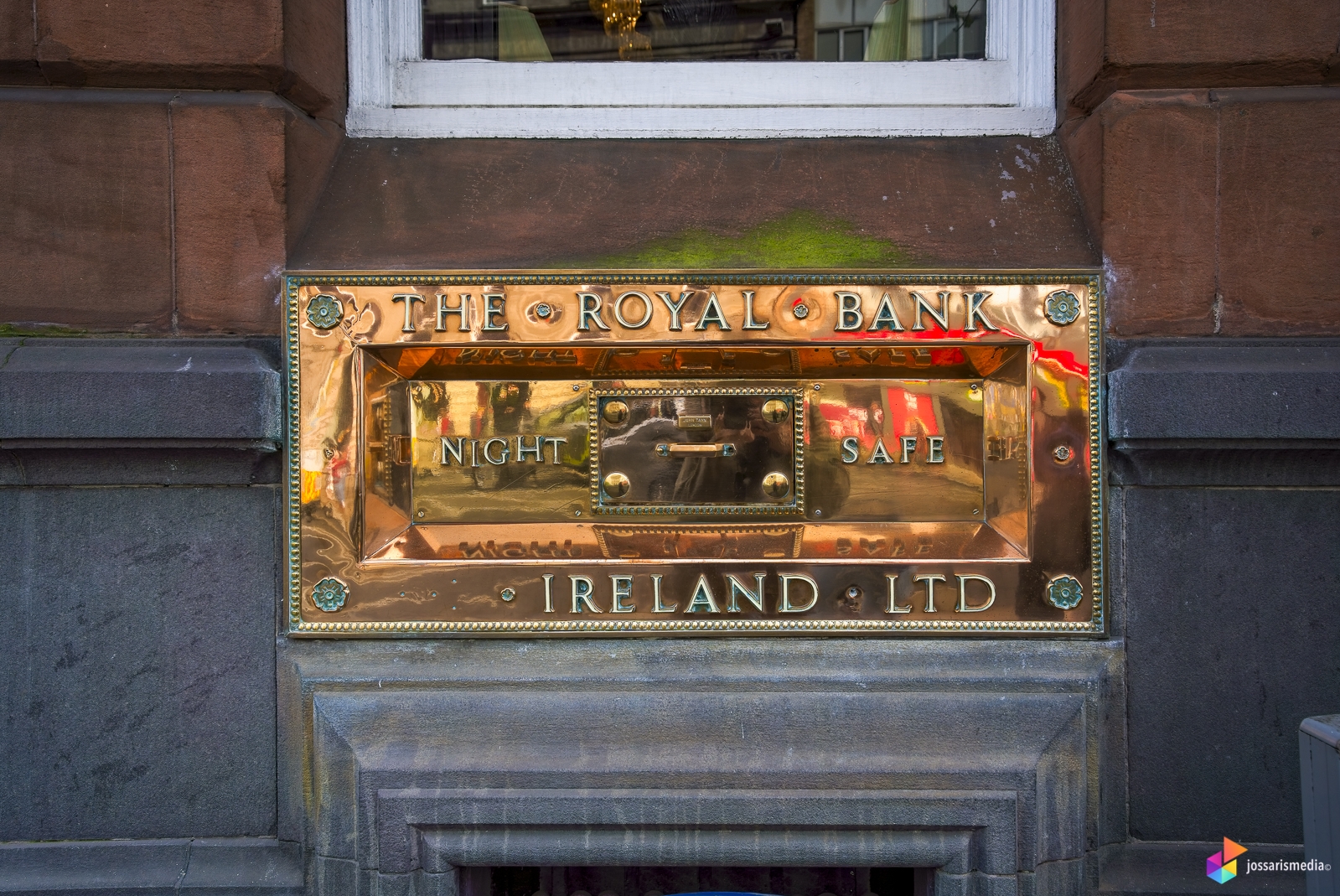 Onderweg kom ik een aantal bekende en ook een aantal nieuwe en verrassende plekken tegen. Ik kan de verleiding niet weerstaan om even bij het restaurant in het pand van de voormalige “Royal Bank Ireland LTD” binnen te wippen. Ik kom helaas niet verder dan de voorkant van de zaak omdat ik aangeef alleen foto’s te willen maken.