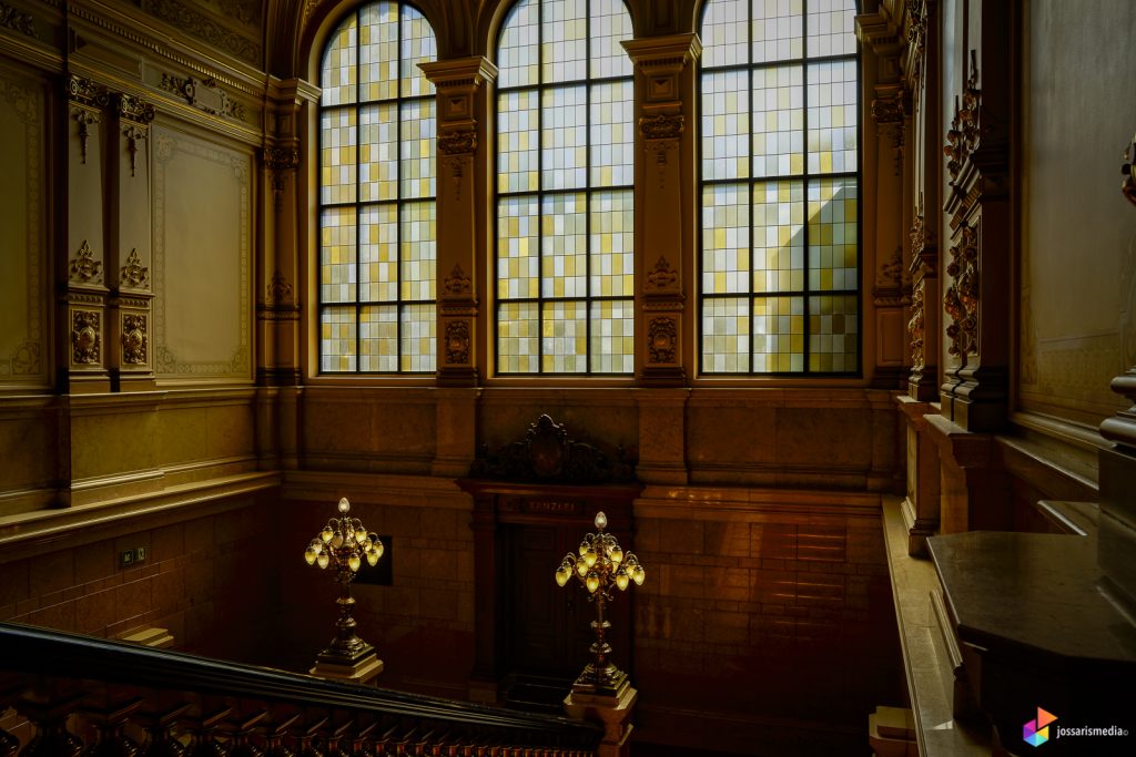 Hele rondleiding duurt zo’n kleine 1,5 uur en begint in de centrale hal van het stadhuis waar de symboliek al meteen zichtbaar wordt bij de trappen. De hal heeft aan weerszijden trappenhuizen, een waar twee trappen omhoog voeren – die van volksvertegenwoordigers – en een met één trap – die van de senaat. De symboliek erachter is dat volksvertegenwoordigers niet met een stem hoeven te spreken, de senaat wel.