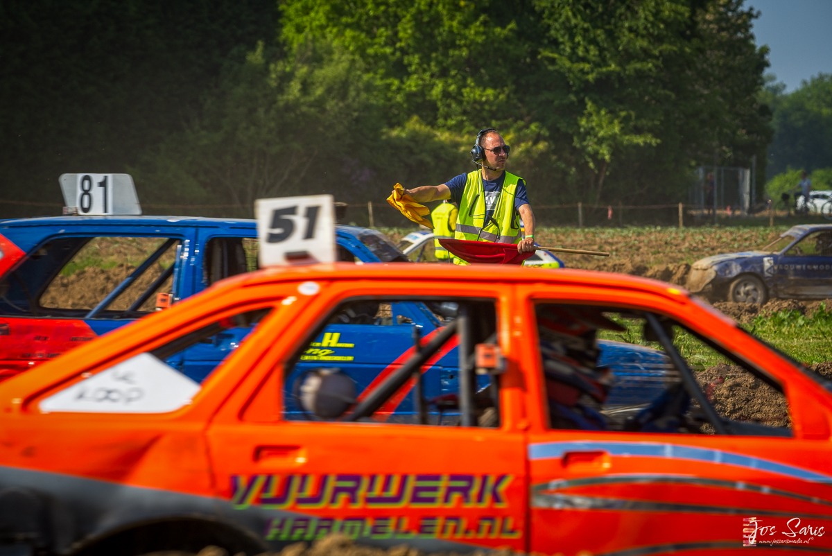 Voor mij was het de eerste keer om dat ik mij waagde aan het fotograferen van een autocross. Ik kan je verzekeren dat je ogen te kort komt er gebeurd ontzettend veel tijdens een crosswedstrijd. Om mij te verzekeren van een goede plek om foto’s van dit spektakel te kunnen maken was ik al ruimschoots van de voren aanwezig. Ik heb mij overigens verbaasd over de professionaliteit van de deelnemers aan deze wedstrijd. Het is werkelijk een serieuze sport als je alleen al kijkt naar de uitrusting die sommige deelnemers bij zich hebben, compleet uitgeruste trucks die ingericht zijn als mobiele werkplaats.