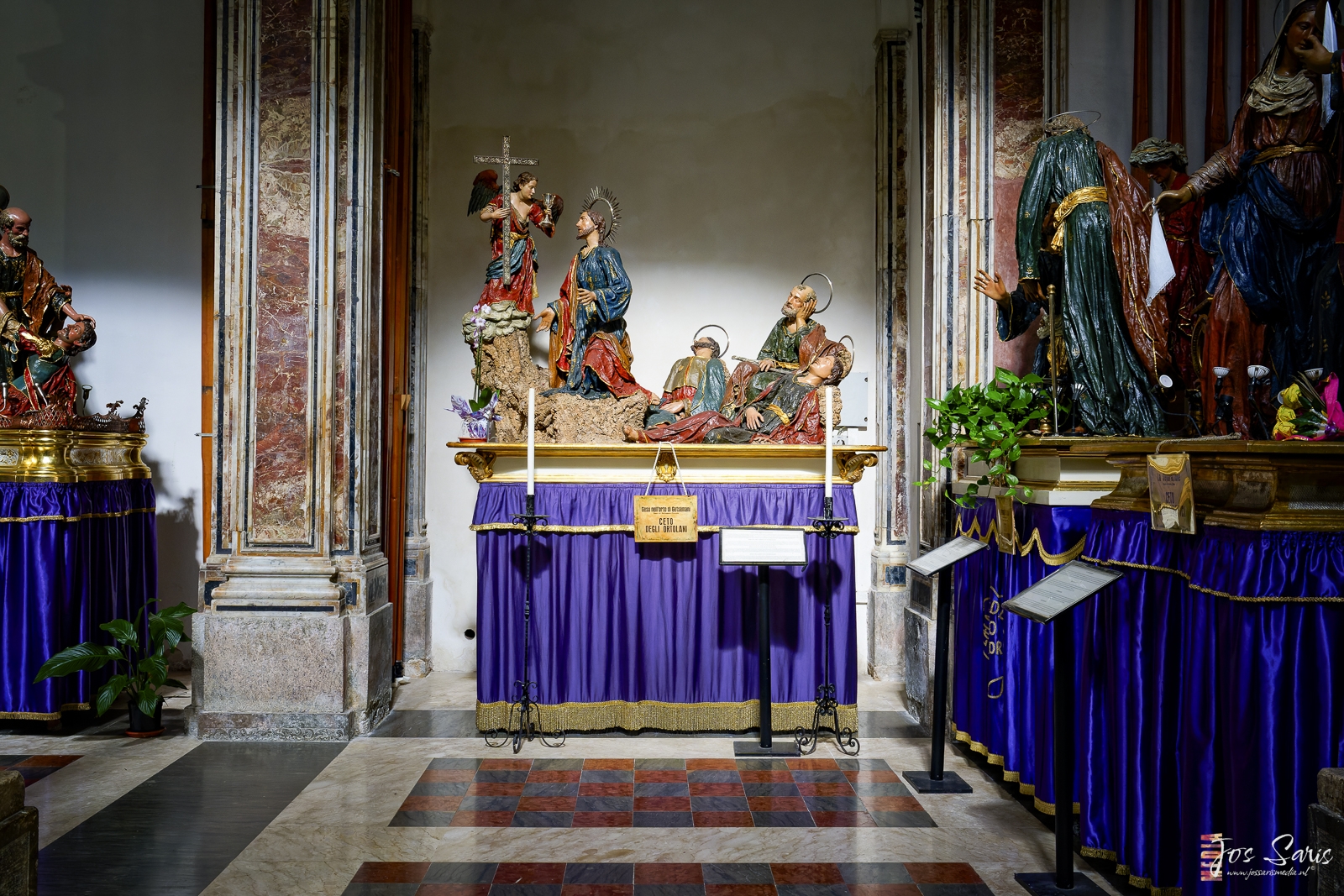*De meest bijzondere kerk is de Chiesa Del Purgatorio, in deze kerk staan de beeldgroepen opgesteld die in de Heilige Week door Trapani gedragen worden.