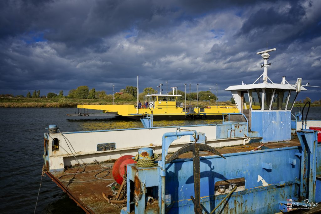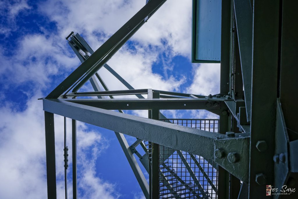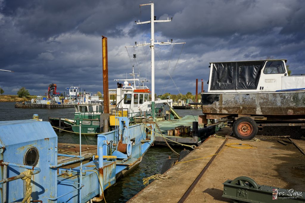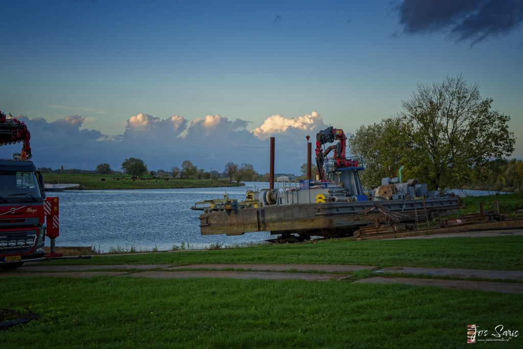 Echter zover komt het vandaag niet. Het van de plek krijgen van de loskraan gaat niet helemaal zonder slag of stoot en daarbij waait het te hard om hem op het ponton te hijsen. Morgen gaat het verder.