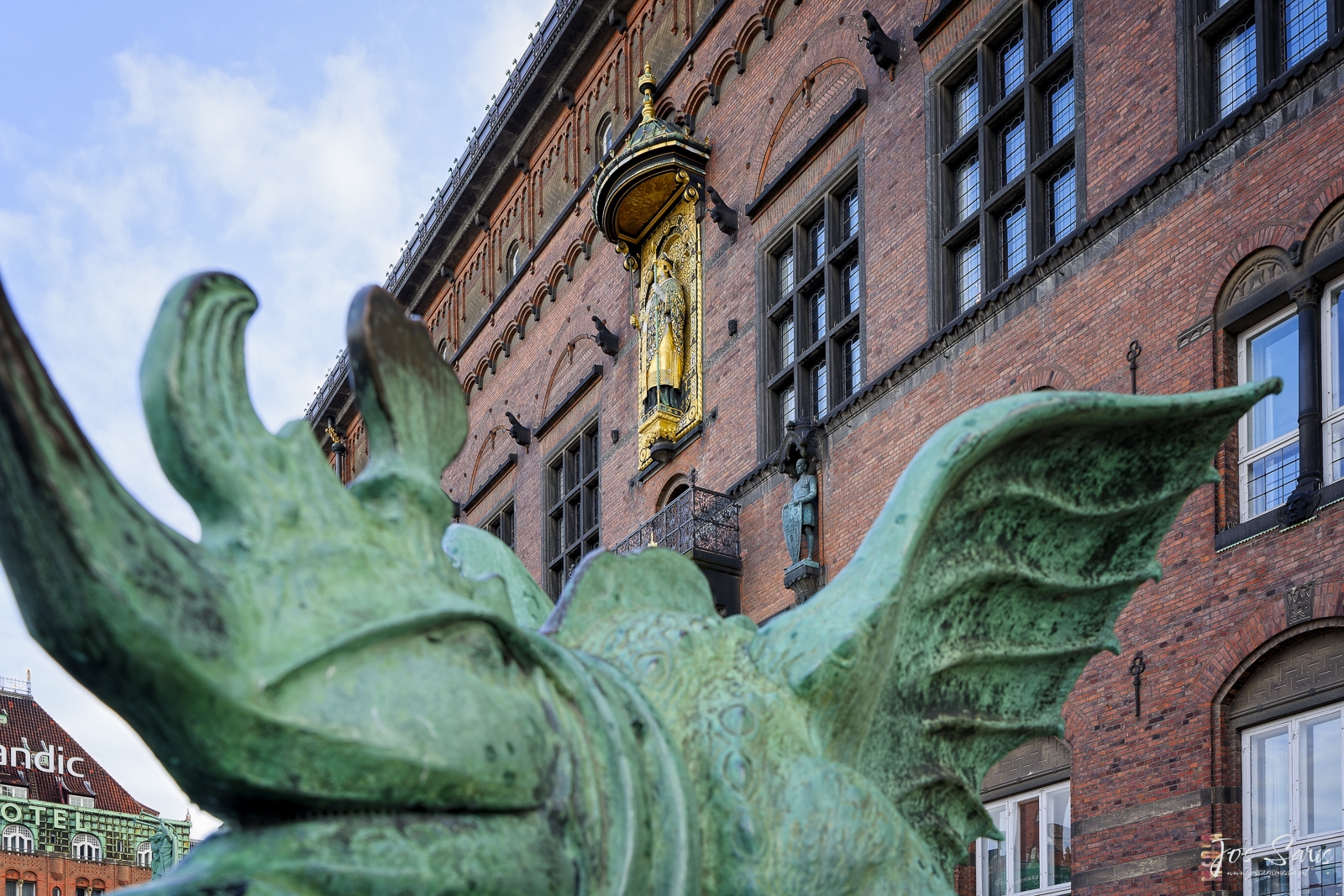 Vandaag zal het volgens de weersvoorspelling een regenachtige dag worden, een perfecte dag voor binnen activiteiten en om musea te bezoeken. Vanuit mijn hotel wandel ik eerst naar het Stadhuis van Kopenhagen om een indruk van de binnenkant van dit gebouw te krijgen.