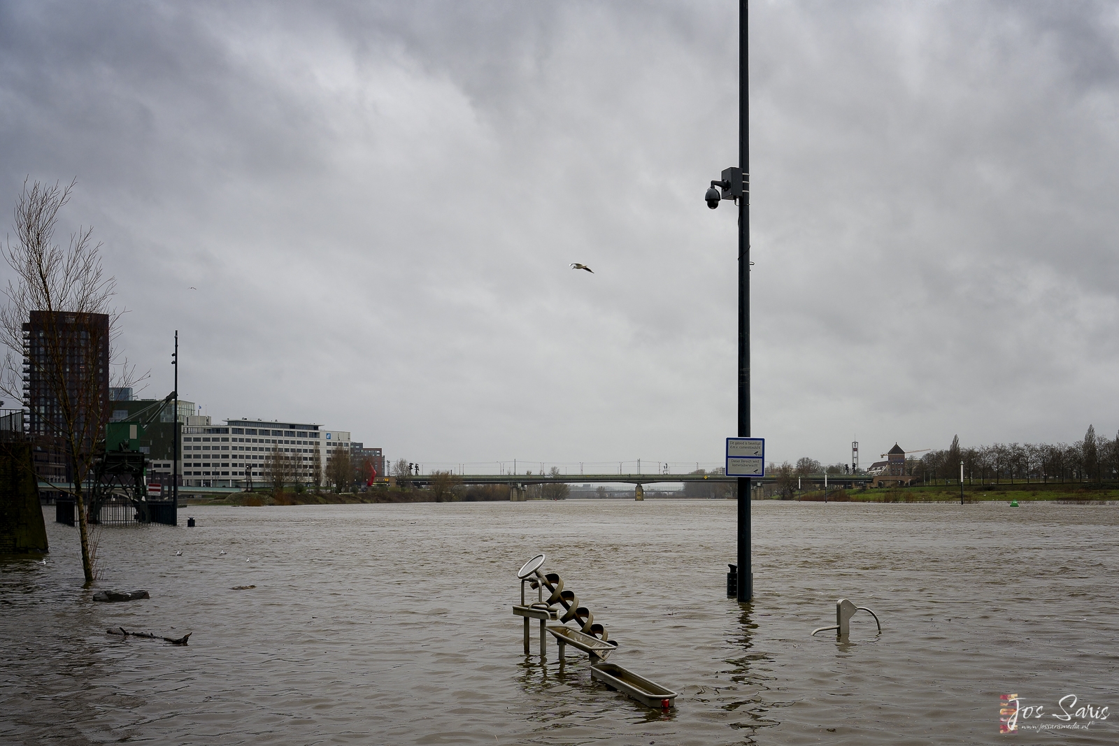 Als je mijn foto’s van afgelopen donderdagmiddag gezien hebt dan zul zien dat het water inmiddels met zo’n 50 cm. gestegen is. De Lage Loswal is inmiddels bijna helemaal ondergelopen. Ondanks dat het water behoorlijk gestegen is, is er volgens opgave van Rijkswaterstaat nog niet echt iets aan de hand.