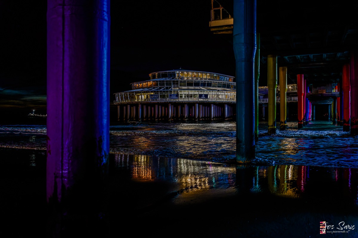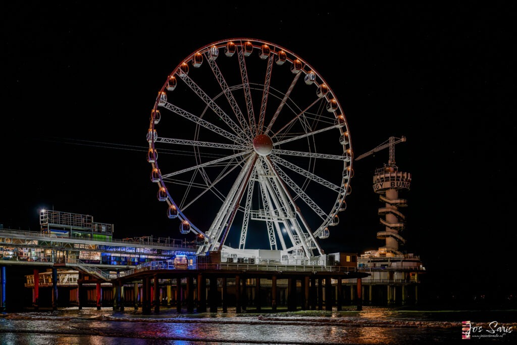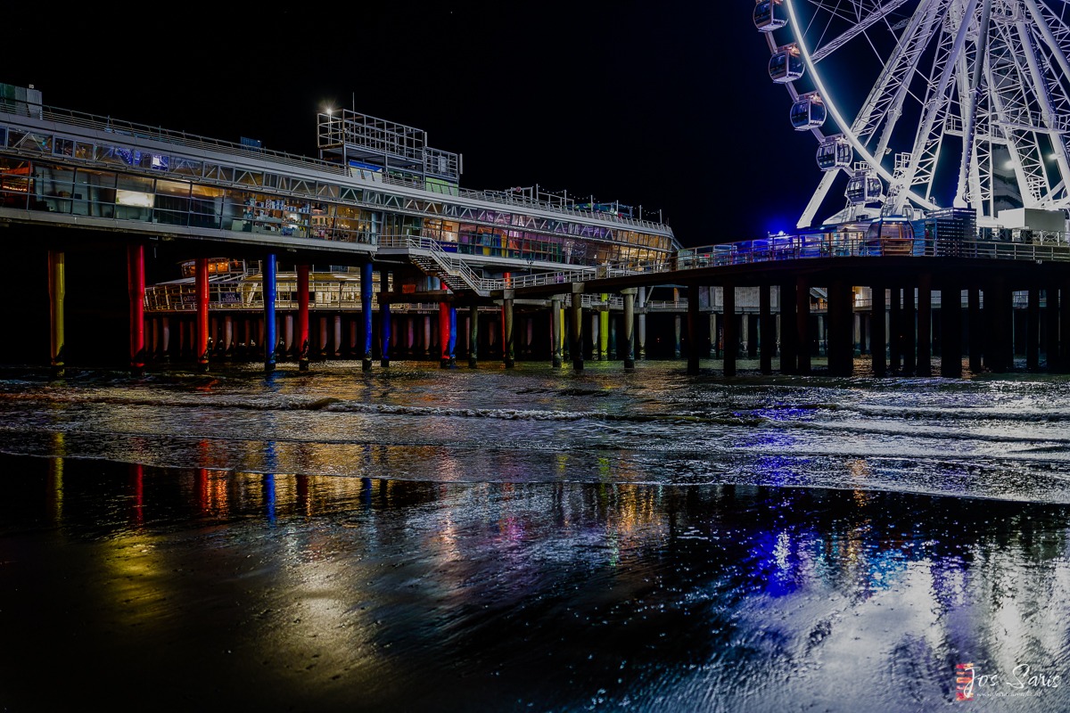 Vervolgens wandeling ik naar de schilderachtige boulevard met zijn verlichte terrassen. Via de terrassen loop over het zand van het uitgestrekte strand naar de voet van de pier. Het enige dat je hoort is het ruisen van de zee. De rust is een welkome afwisseling met de drukte van vandaag in het centrum van Den haag. Uiteindelijk bereik ik de voet van de majestueuze pier, waar de zee een hypnotiserend schouwspel biedt.
