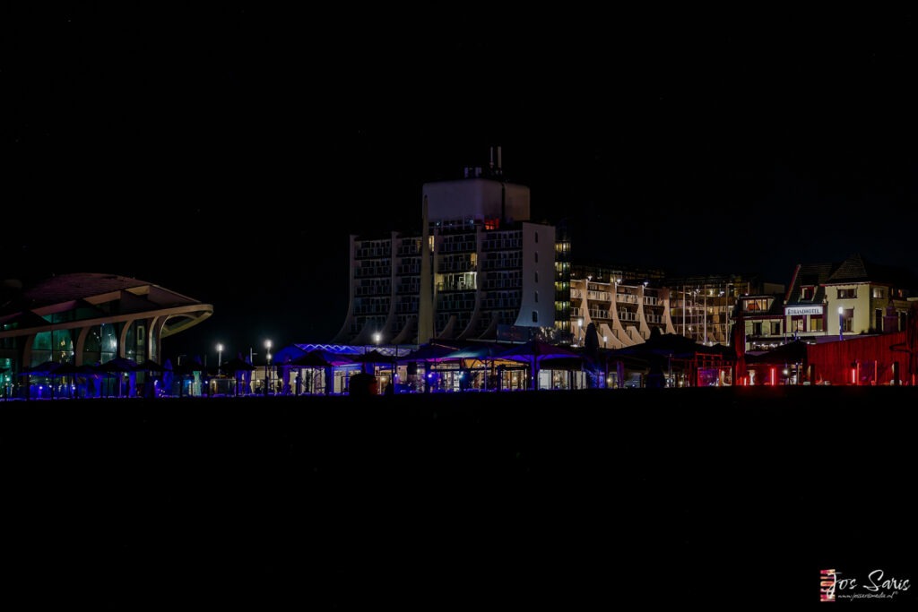 De terugtocht gaat via de terrassen van het Noorderstrand, waar maar een paar mensen genieten van de avond. De lampen die de pier en het reuzenrad uitbundig uitlichten zijn inmiddels gedoofd. Men maak zich op voor de komende nacht.
