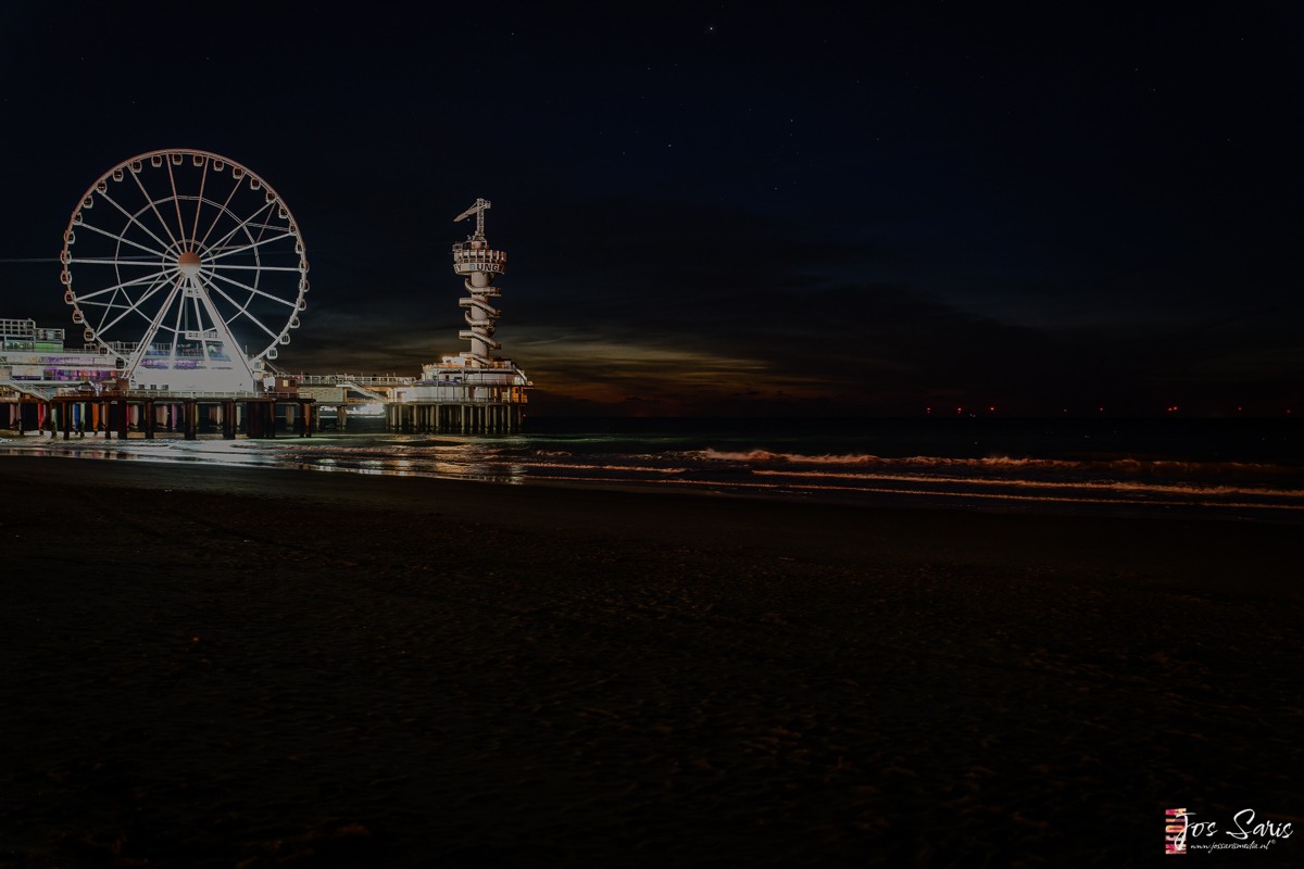 Klik hier voor de foto impressie en hier voor het fotoalbum van mijn avondwandeling over het donkere Scheveningse strand.