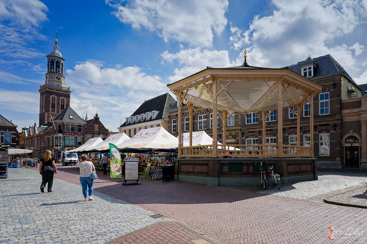 Vervolgens bracht onze route ons naar de Nieuwe Markt, het kloppende hart van de stad. Deze levendige plek, omringd door historische gevels, vormde een perfect contrast met de statige rust van het Oude Raadhuis. Op deze zomerse dag zagen we lokale bewoners en toeristen genieten van de terrasjes, terwijl straatmuzikanten voor een gezellige achtergrondmuziek zorgden. De markt gaf ons een mooi beeld van het hedendaagse Kampen, waar geschiedenis en modern stadsleven harmonieus samengaan.