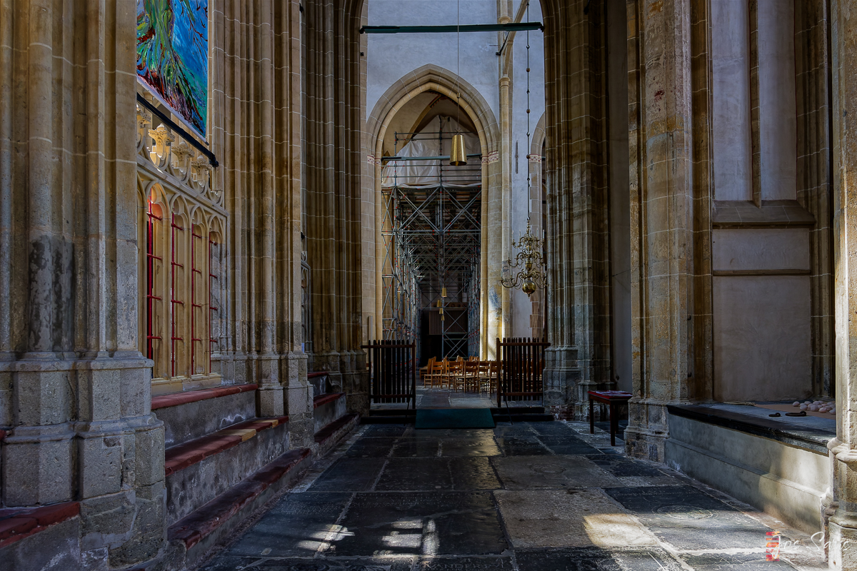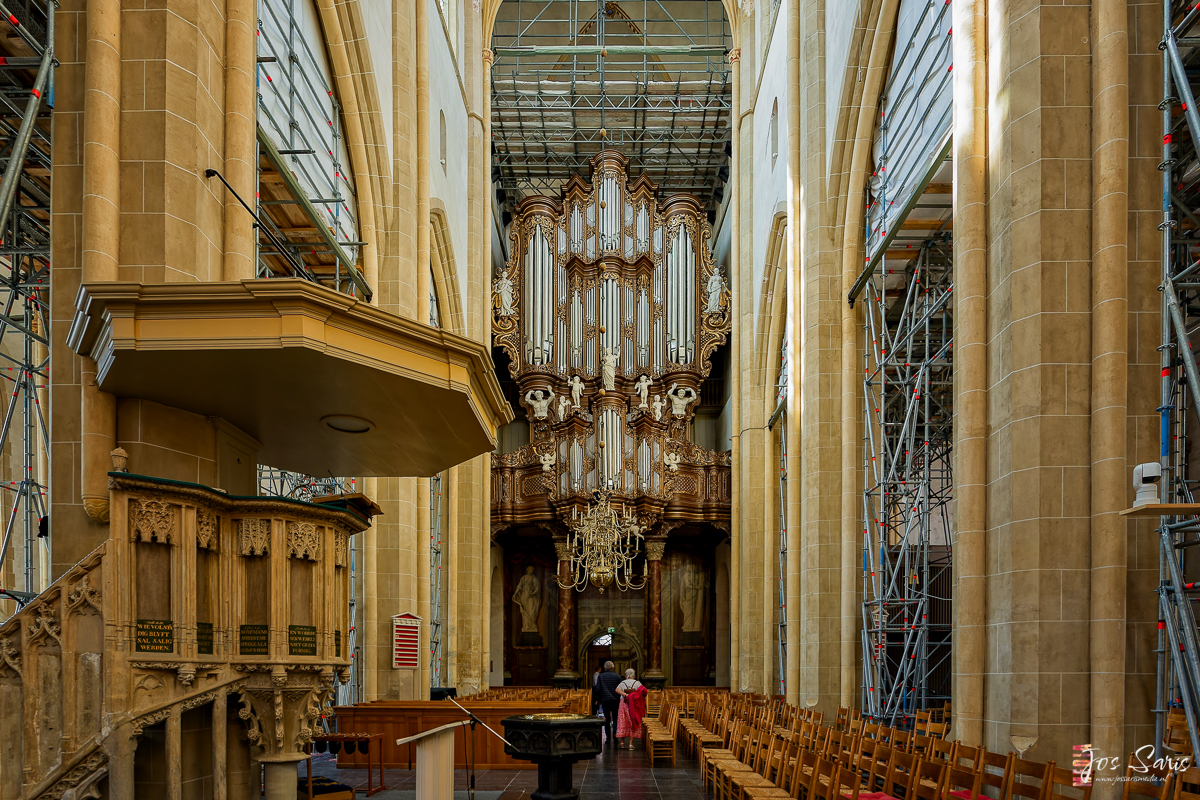 Een onbetwist hoogtepunt van onze tocht was de Bovenkerk, ook bekend als de Sint-Nicolaaskerk. Deze gotische basiliek domineert de skyline van Kampen en is een tastbaar bewijs van de vroegere welvaart en het belang van de stad. We namen de tijd om het indrukwekkende interieur – dat deels in de steigers staat – te bewonderen, met bijzondere aandacht voor het beroemde Hinsz-orgel en de middeleeuwse muurschilderingen.