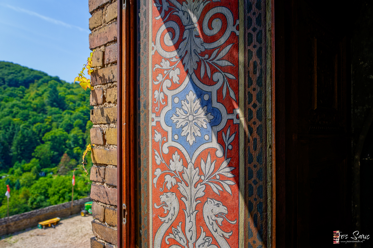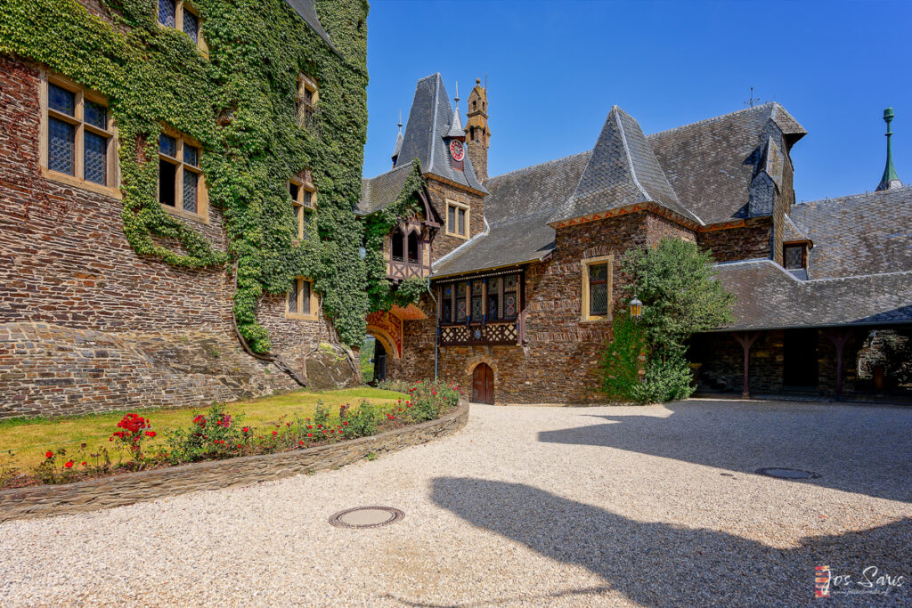 Binnen wandel je langs rijk ingerichte ridderzalen, eetkamers en gotische vertrekken, met een gids die vertelt over het verleden van de burcht, haar verwoesting door Franse troepen in de 17e eeuw en de latere heropbouw in de 19e eeuw. De rondleiding duurt ongeveer 40 minuten en is beschikbaar in het Duits, Engels en met geschreven vertalingen in het Nederlands. Je bewondert zeven kamers, elk met een eigen stijl en historische betekenis, en vanaf het balkon heb je een fenomenaal uitzicht over de Moezelvallei. De burcht zelf, met zijn dikke muren en torens, ademt de sfeer van de middeleeuwen en roept de verhalen van de ridders en adel tot leven.