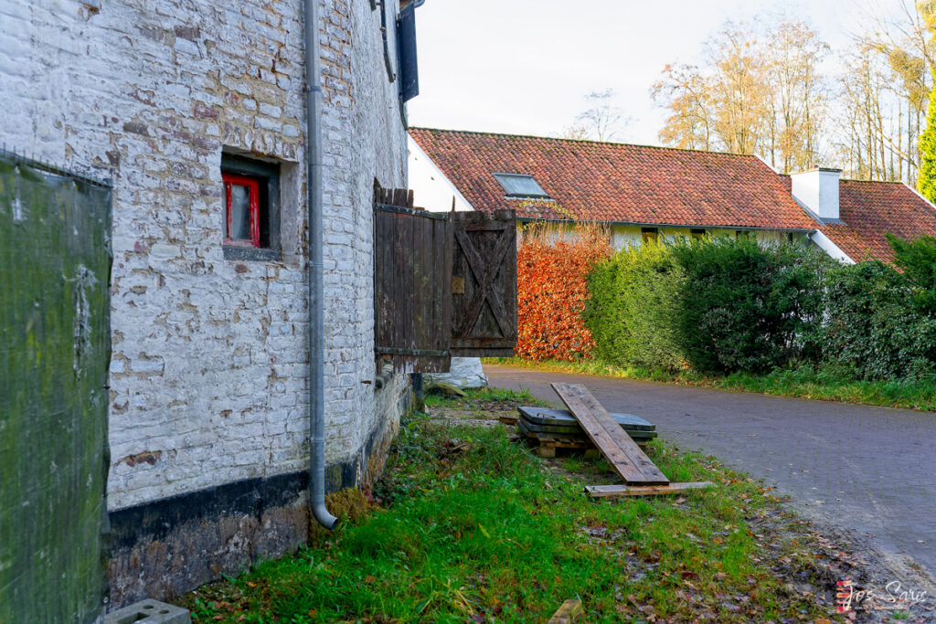 Na een korte pauze bij een houten bankje volg ik de Oliemolenweg, een rustiek pad dat me verder langs de beek voert. De naam herinnert aan de oude oliemolen die hier ooit in werking was, aangedreven door het stromende beekwater. De route voelt als een reis door de tijd; overal zijn sporen van vroegere landbouw te zien. Oude knotwilgen markeren de grens van voormalige akkers, en in de verte ligt een oude boerderij met rode dakpannen die schitteren in de winterzon.