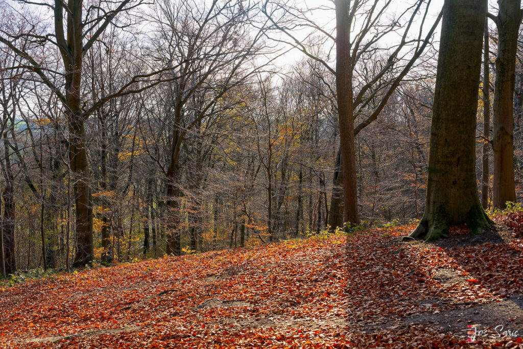 Wanneer ik het Stammenderbos nader, verandert de sfeer van open landschap naar een dichter, schaduwrijk woud. De bomen staan er in dichte rijen; eiken, beuken en berken vormen een natuurlijk gewelf boven het pad. De bosgrond is bedekt met bladeren, en de geur van humus en mos vult de lucht. Hier voel je echt de Oude-Limburgse natuur in haar meest pure vorm.