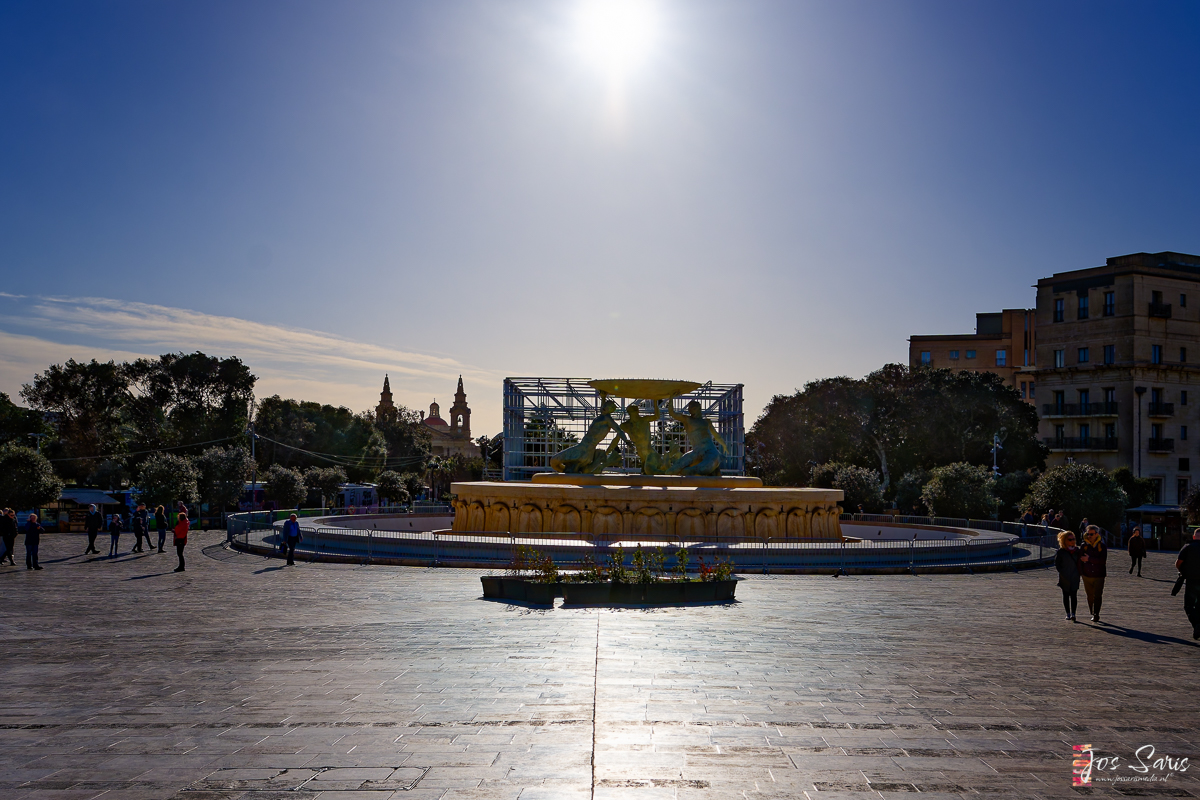 De bus zet ons af bij de Central Busterminal, net buiten de stadsmuren. Vanaf hier hebben we een direct uitzicht op de indrukwekkende Triton Fontein, die in de middagzon schittert als het officieuze welkomstcomité van de stad.